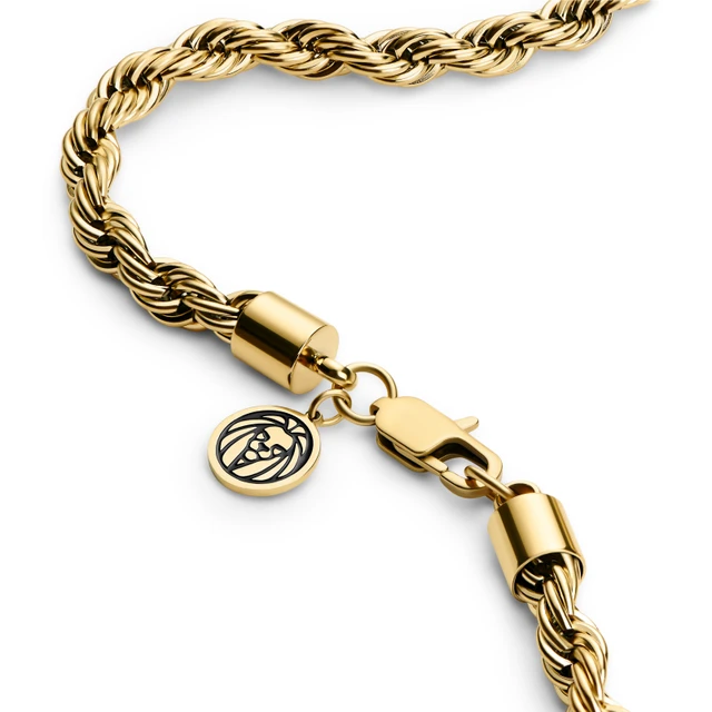 Catena d’oro a Corda: Con il suo design attorcigliato, offre un’estetica unica che può completare una varietà di stili. Versatile e adatta per essere indossata da sola o abbinata ad altre catene.
