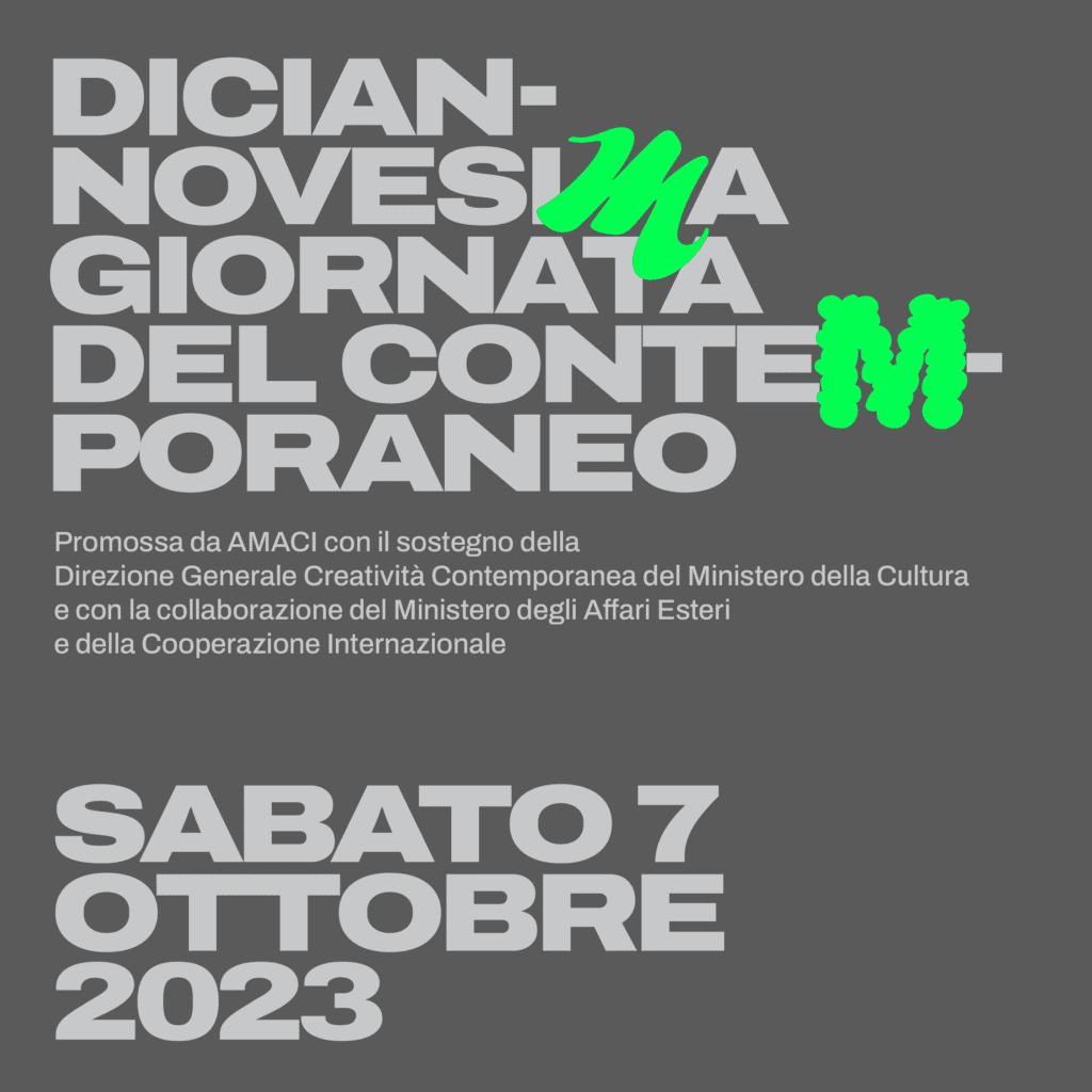 AMACI, l’Associazione dei 24 Musei di Arte Contemporanea Italiani, organizza annualmente la Giornata del Contemporaneo per avvicinare l’arte al grande pubblico. Quest’anno, con il sostegno della Direzione Generale Creatività Contemporanea del Ministero della Cultura e la collaborazione con la Direzione Generale per la Diplomazia Pubblica e Culturale del Ministero degli Affari Esteri e della Cooperazione Internazionale, l’evento si estenderà oltre i confini italiani, coinvolgendo anche la rete diplomatico-consolare del MAECI e promuovendo la partecipazione di musei e istituzioni d’arte in tutto il mondo.