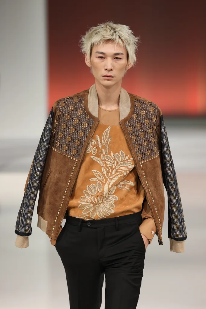 La sfilata ha messo in luce l’abilità del celebre stilista calabrese nel creare look maschili ispirati all’intramontabile fascino di Alain Delon, scomparso solo un mese fa. Grande ha saputo catturare l’essenza dello stile della Costa Azzurra e di Saint Tropez degli anni ’60 e ’70, proponendo capi in pelle dal sapore rock e sofisticate lavorazioni.