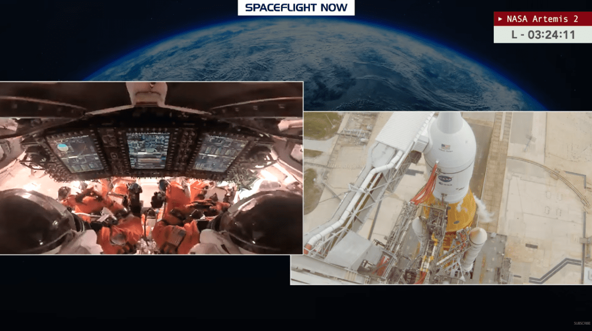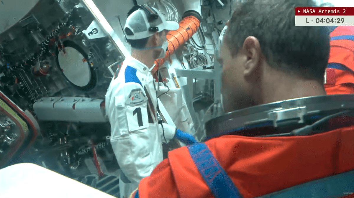 Una volta che i quattro astronauti – Wiseman, Glover, Koch e Hansen – sono “assicurati” nelle poltrone di Orion con cinture e connessioni vitali attive, parte la fase critica dei check Go/No-Go, un rituale NASA trasmesso in diretta audio.