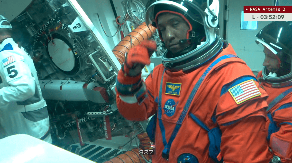 Continua l’accesso nella capsula di lancio di Artemis II. Qualche nota e curiosità sulle tute spaziali che indossano. Gli astronauti di Artemis II indossano le tute di volo Modified Advanced Crew Escape Suit (MACES), evoluzione arancioni delle storiche “pumpkin suits” usate per lanci e atterraggi, pressurizzabili per emergenze e dotate di guanti migliorati per maneggiare Orion.
