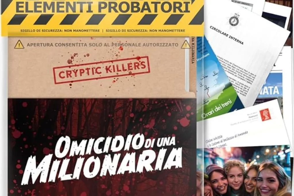 Gli amanti dei misteri troveranno pane per i propri denti con Omicidio di una milionaria. Gioco investigativo e divertente, il suo scopo è quello di trasformare il giocatore in un vero e proprio detective. I partecipanti potranno disporre di 29 prove tra cui articoli di giornale, fotografie della scena del delitto, rapporti di polizia e tanto altro, utili alla risoluzione del caso. Passare una serata alternativa tra amici, parenti o in coppia non sarà un problema con questo titolo di Cryptic Killers.