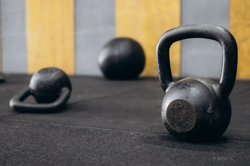 Manubri regolabili e kettlebell.