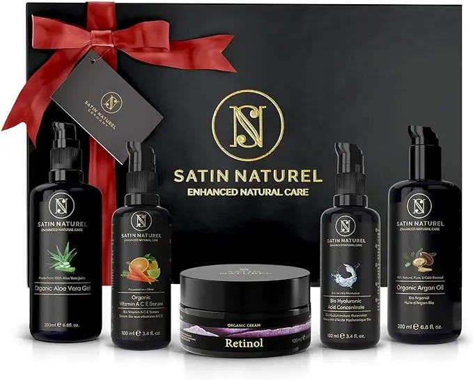 Satin Naturel – Set Regalo Crema Viso e Corpo: per chi vuole prendersi cura della propria pelle in modo naturale e biologico, questo è il set regalo perfetto. Contiene cinque prodotti a base di ingredienti vegetali, tra cui il siero viso e la crema viso antirughe all’acido ialuronico, il gel di aloe vera, l’olio viso all’argan e il siero vitamina C A E. Un regalo che nutre, idrata e protegge la pelle, da usare quotidianamente.