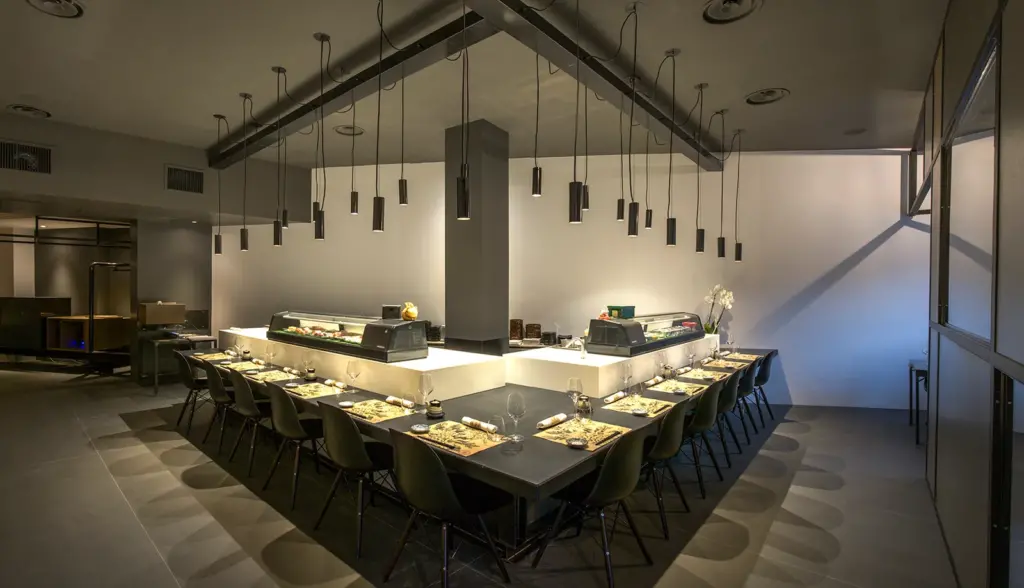 La particolarità del locale sta nell’assenza di un menù à la carte: viene infatti proposta unicamente la formula Omakase, che significa in giapponese “mi fido di te“. Si tratta evidentemente di un menù degustazione curato personalmente dallo chef e servito in un lungo bancone centrale dal quale poter assistere ad un vero e proprio show cooking. Tra i piatti da poter gustare in questa insolita veste, si segnala una vasta selezione di nigiri che varia giorno per giorno in base al pescato ed alla stagionalità dei prodotti utilizzati.