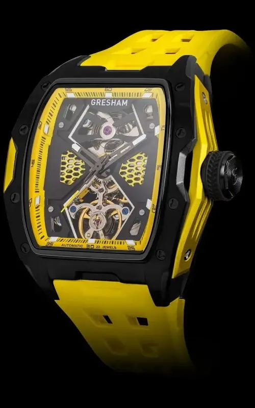 Design Innovativo: Il design degli orologi Gresham si distingue per l’audacia e l’originalità. Ogni modello è un tributo all’architettura britannica, con linee pulite e dettagli sofisticati che riflettono uno stile senza tempo. La collezione Horizon, con il suo telaio esoframe in acciaio e alluminio, è un esempio di come l’estetica possa incontrare la funzionalità.