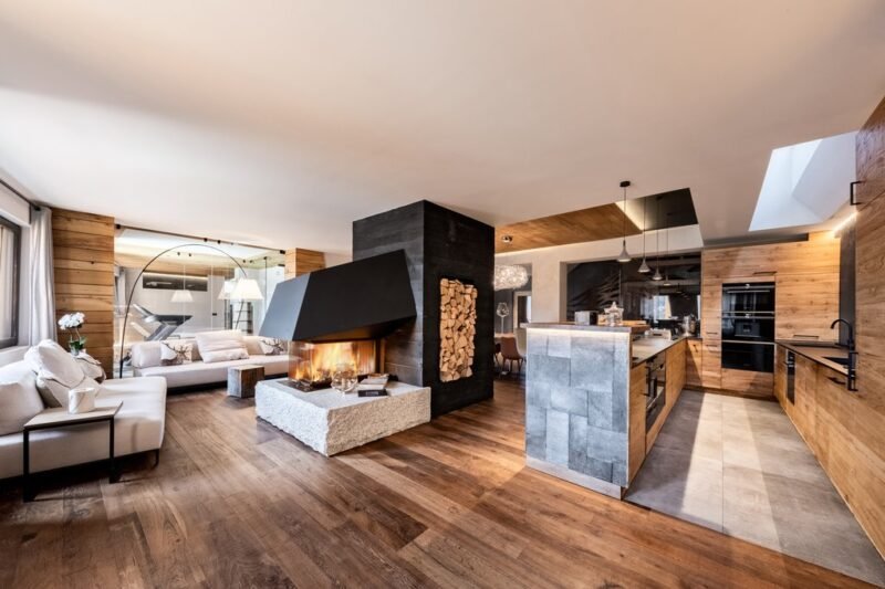 L’esclusivo chalet è composto da un’ampia zona living dove al centro spicca un grande camino a legna, area salotto multimediale equipaggiata con schermo HD, cantina a vista di vini e formaggi, cucina professionale e sala da pranzo.