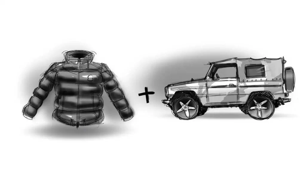La Casa della Stella di Stoccarda ha annunciato l’originale e innovativa collaborazione artistica con la Moncler seguendo lo stesso percorso di sviluppo, entrambe inizialmente vissute come automobili e indumenti a forte contenuto tecnico, fuoristrada e bomber, a oggetti del desiderio più alto quasi inaccessibile.