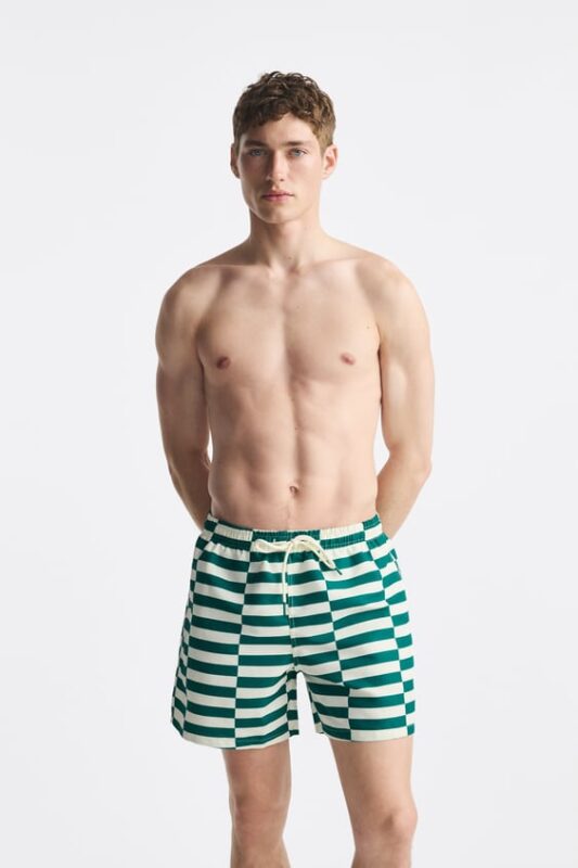 Sinonimo di eleganza e sobrietà: i motivi a righe. Immancabili, in una lista swimwear trends. Il costume da bagno uomo a righe è un vero e proprio passepartout. Per un look marino che si rispetti, basta abbinarli a t-shirt basic, sandali o espadrillas e il gioco è fatto: un “gentlebeach” per eccellenza. Se vuoi nascondere la pancetta, scegli le righe verticali, perfette per snellire la silhouette. Numerose, le proposte per la stagione in arrivo: righe sottili dalle tonalità soft e strisce più ampie super colorate. Se invece ciò che ti preoccupa è la troppa magrezza, prova il modello a righe orizzontali firmato Zara.