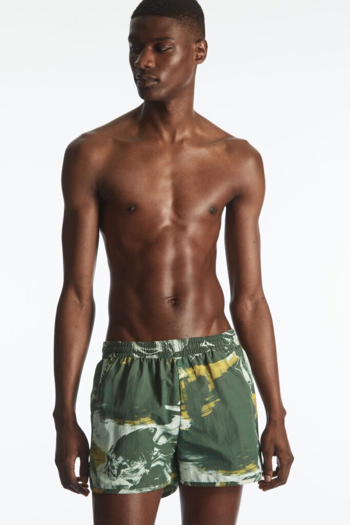 Per l’estate 2023, i costumi da bagno diventano piccole opere d’arte da indossare grazie a fantasie astratte che ricordano tele contemporanee. Schizzi, macchie, spruzzi di colore e pennellate, numerosi, gli effetti pittorici dei tessuti cui sono realizzati. Proposte di tavolozze delicate, fino a tinte più decise e immediate. Cos propone un modello realizzato in tessuto riciclato dalle sfumature avvolgenti del verde militare, giallo e bianco, mentre Vilebrequin gioca con la forza dei colori primari proponendo linee con mescolanze di cromie di forte impatto.
