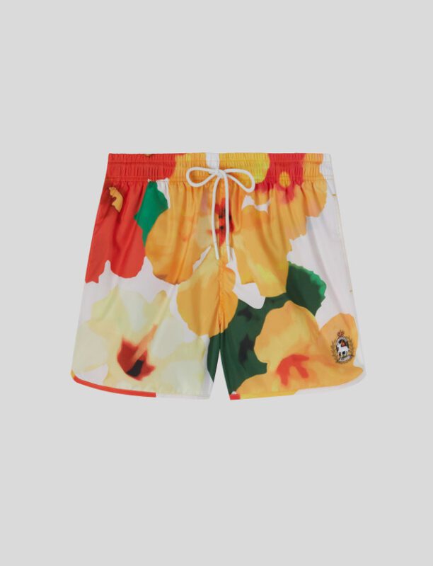 Iniziamo alla grande, con la vivacità dei pattern e dei colori: la tendenza floreale per i costumi da bagno uomo 2023, è tra le più gettonate. Che siano stampe più o meno definite, le opzioni sono vaste e ovviamente la scelta è personale. Per chi ama osare: audaci e vivi i fiori del brand Johnny Lambs, per chi invece punta sulla discrezione allora basta scegliere fantasie dai toni più scuri, Abercrombie&Fitch.