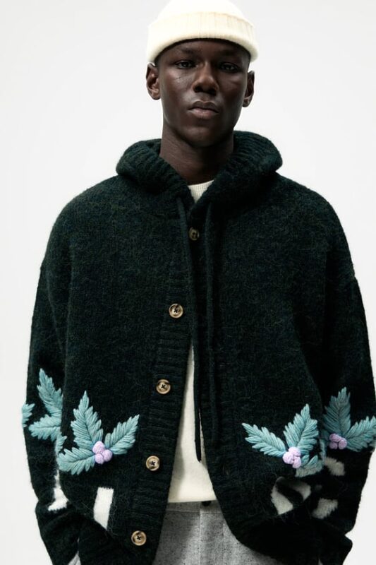 Caldo e avvolgente, il maglione natalizio di Zara. Non rappresenta il classico pullover natalizio fantasia dai colori brillanti, ma sicuramente ne incarna lo spirito anche grazie agli importanti ricami sul fondo. Nei toni verde bottiglia, con dettagli nelle nuance acquamarina e lilla. Cappuccio regolabile, bottoni e vestibilità morbida ne esaltano la linea retrò.