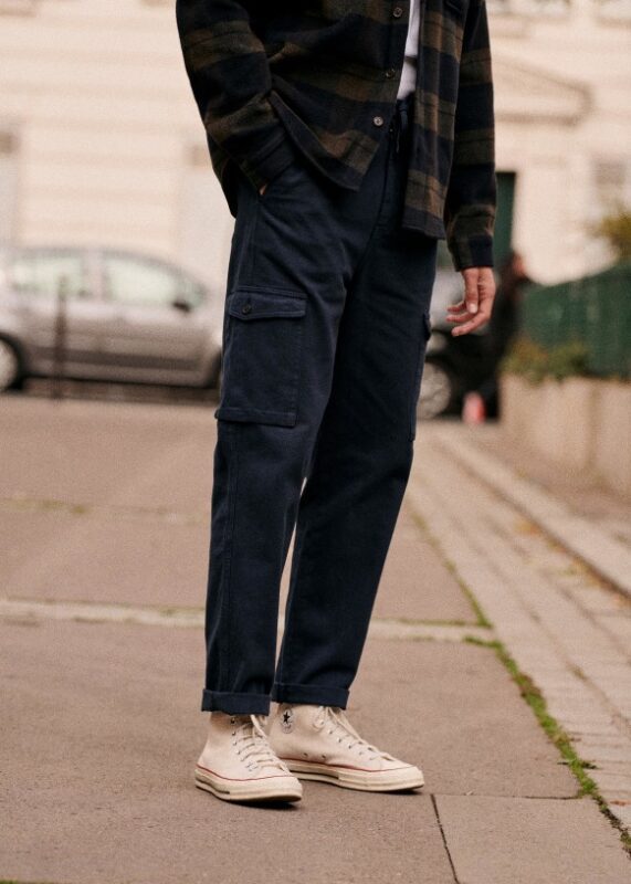 Per quanto riguarda i pantaloni, continua il grande trend dei pantaloni cargo. Provenienti dal mondo militare, sono caratterizzati da tasche ai lati delle cosce.