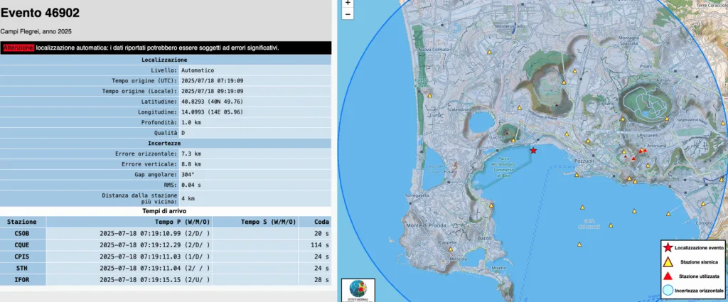 Ore 9.14, forte scossa di terremoto con epicentro ai Campi Flegrei; avvertita in tutta la provincia.