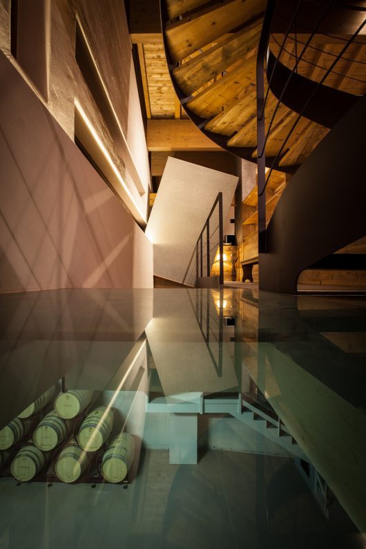 Un percorso di visita che inizia nella sala di degustazione emozionale, sito a fianco della cantina storica, in una struttura con richiamo all’architettura tipica di alta quota che ricorda il marchio distintivo di Les Crêtes: il profilo di un massiccio montuoso.
